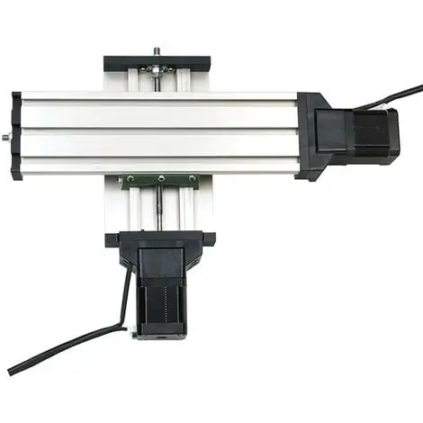 Fabriqué en aluminium à haute résistance (surface densifiée), comme décrit à droite. Avec deux moteurs pas à pas pour les axes X (transversale) et Y (longitudinale).