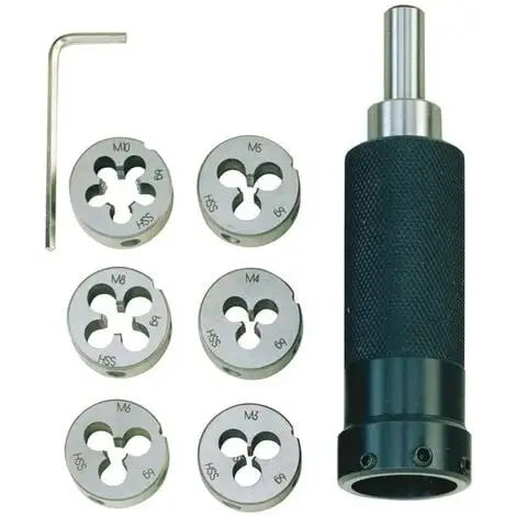 /* */ Porte-filière avec filière pour filetage extérieur de M3 à M10