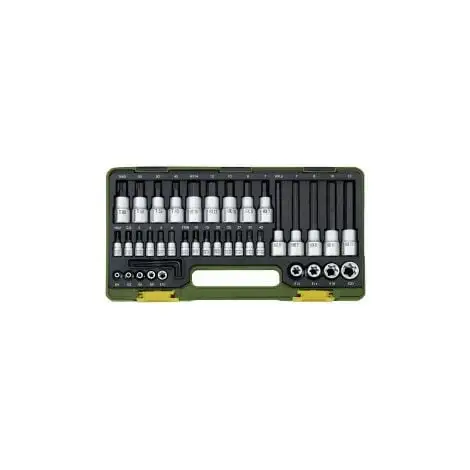 Coffret 46 embouts de vissage montés sur embout 1/4 ( 6,35 mm ) et 1/2 ( 12.70 mm )comprenant :