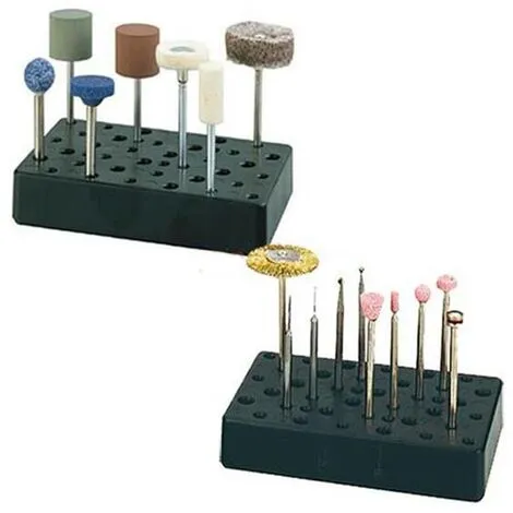 Pour le rangement ordonné de micro-forêts, de pointes de meule, de brosses, de disque de meulage, de polissage… et des accessoires équipés d’un arbre de 2.35 ou 3.2 mm de diamètre.