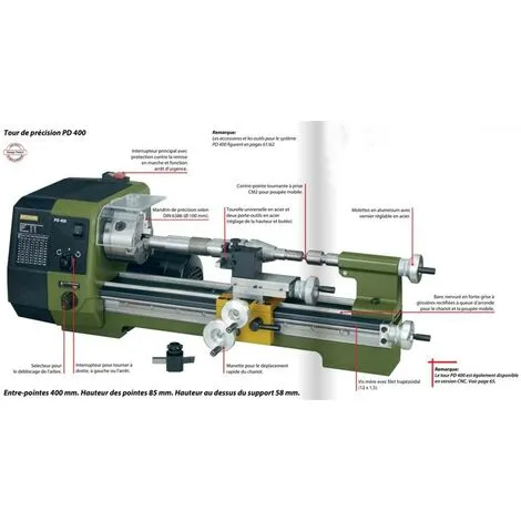 Mandrin: Mandrin à 3 mors de qualité selon DIN 6386, classe 1 (concentricité 0,04 mm).