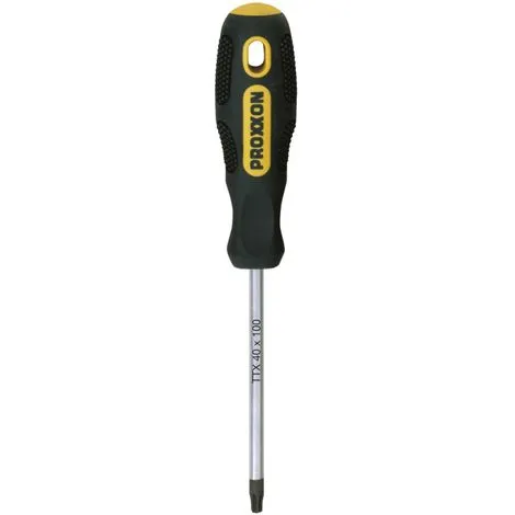 Tournevis TTX-Tamper-Torx (avec trou avant) 20×100 mm PROXXON modèle 22236 Excellente adhérence instantanée Elle permet l’application des valeurs de couple élevées et de la pression avec une conception équilibrée est en position horizontale, à la fois dans une position verticale Symbole du type de lame et de la taille indiqués sur le capot de la poignée pour une identification sécurisée Trou traversant pour suspendre ou insérer un levier Grip en caoutchouc spécial anti-huile et résistant aux acides, sur lequel la saleté n’adhère pas Rainures des doigts, meilleure adhérence lors de la rotation rapide Marquage laser clair des dimensions sur les lames en acier spécial chrome-silicium-manganèse-molybdène durci Passage de la détrempe sans tensions internes Une relation équilibrée entre résistance à la torsion et durabilité Embout noir rectifié pour une précision maximale dans la prise en main La possibilité de glissement d’outil diminue DIMENSIONS:TTX: 20 Longueur du levier: 100 mm Longueur de la poignée: 100 mm